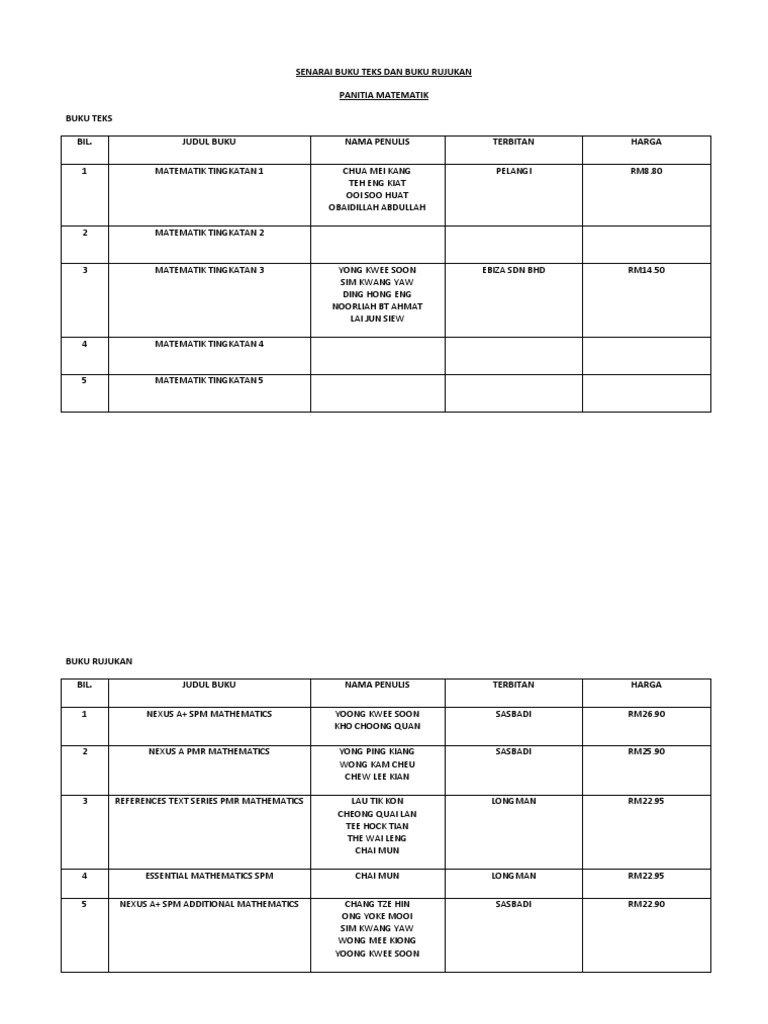 Senarai Buku Teks Dan Buku Rujukan Panitia Mate Pdf